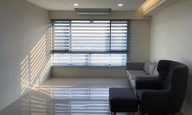 以捲動的方式帶起雙層布面,虛實條紋讓簡單不花俏的設計,產生變化交錯的光影,能夠清楚劃分各個場域,輕鬆塑造空間的趣味,符合不同空間的設計需求。