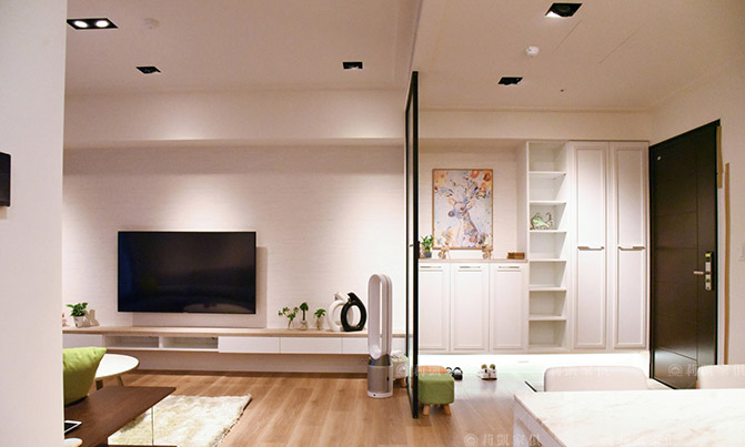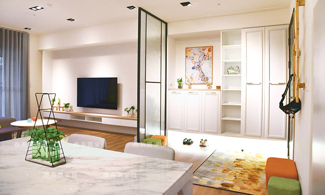 輕裝修也能有獨特的溫柔樣貌,因應屋主的喜好採用大量白色系,淺色木質的明淨感,搭配柔軟的布料沙發混搭家飾單品,讓整體風格更顯乾淨,繽紛的朝氣滲入其中,為空間注入靈魂!